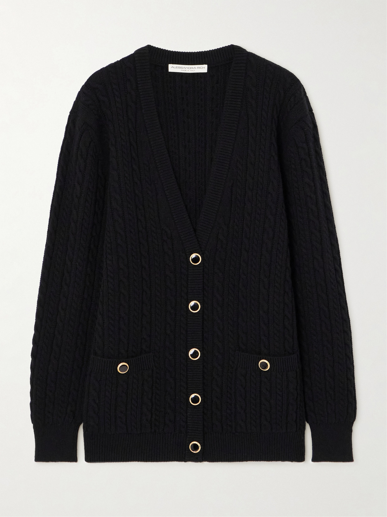 Alessandra Rich - Cable-knit Wool Cardigan - Black