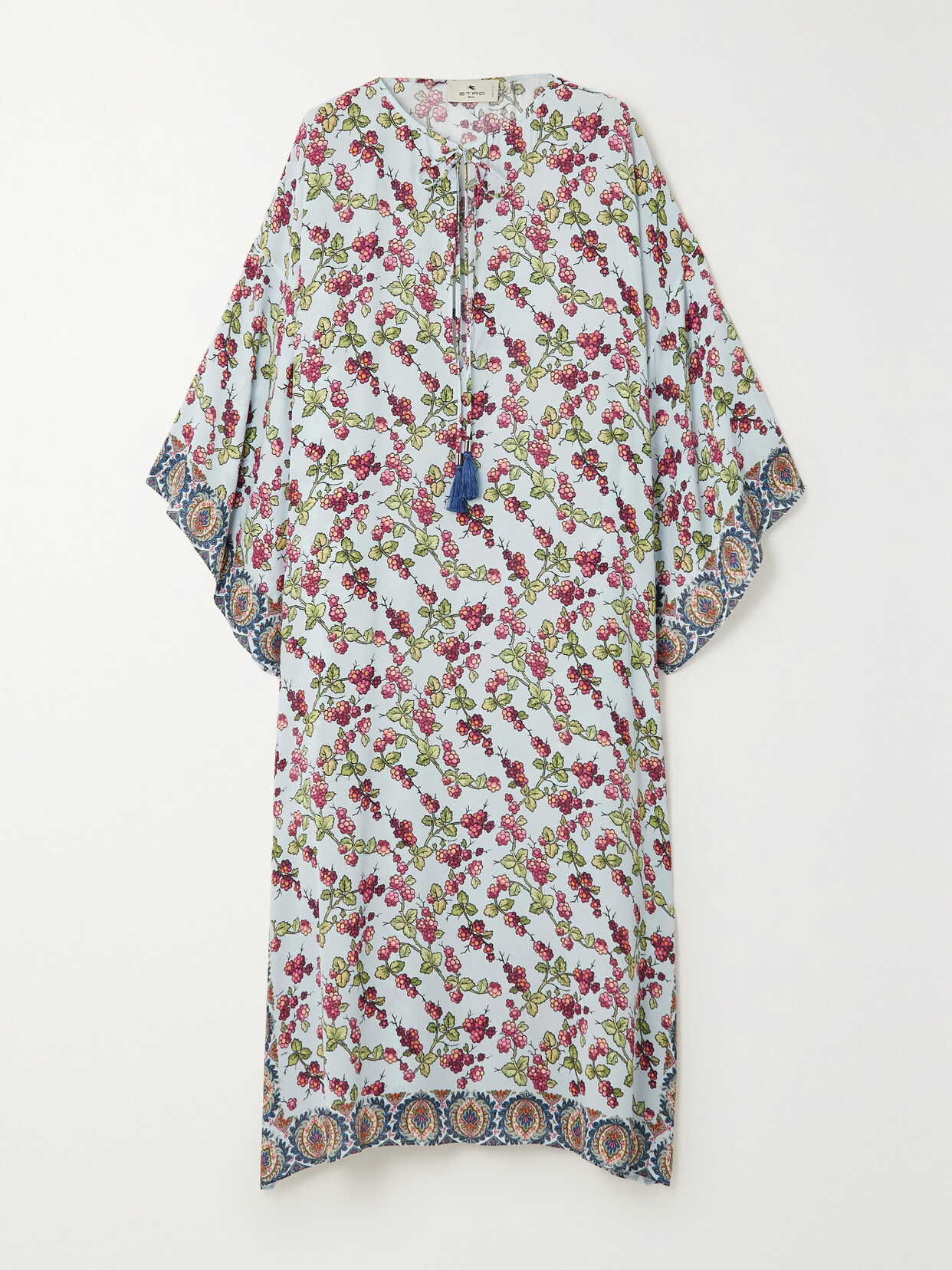 Etro - Draped Floral-print Silk-crepon Maxi Dress - Blue