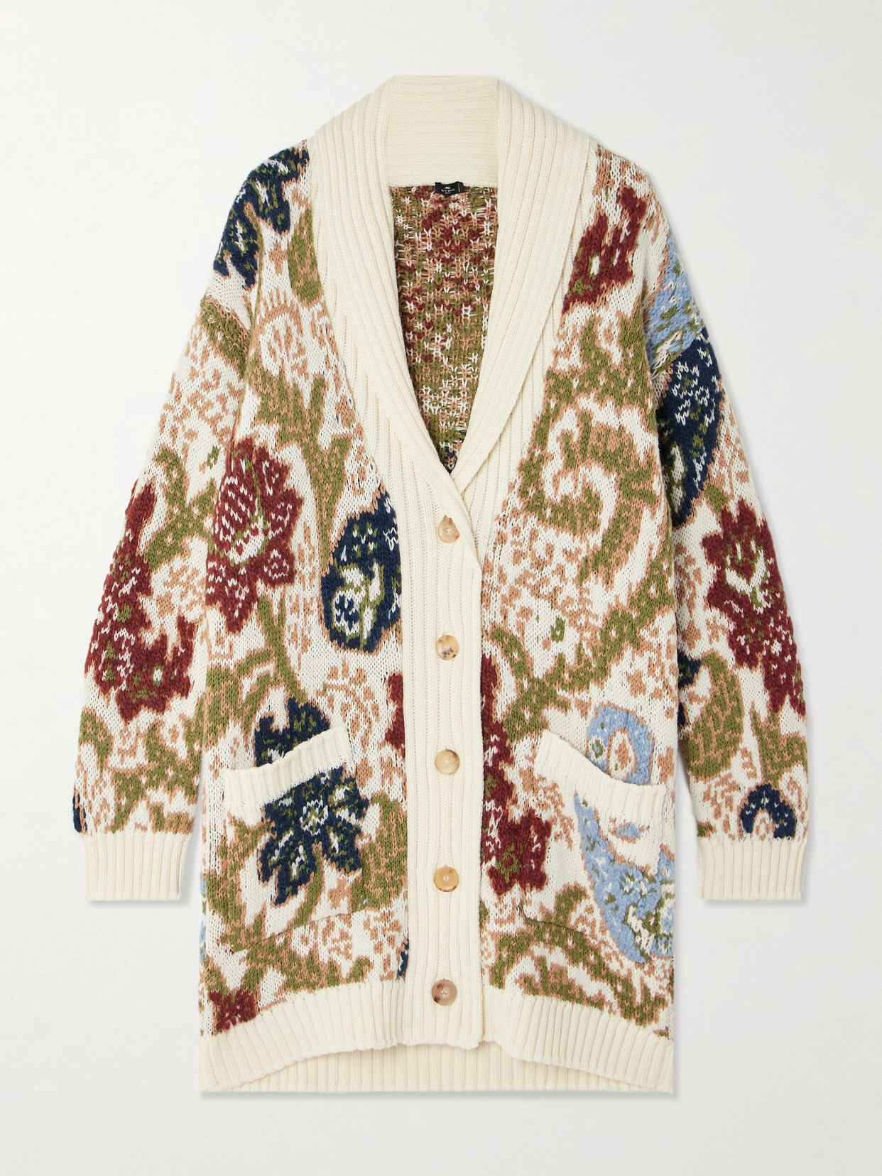 Etro - Oversized Jacquard-knit Wool-blend Cardigan - Cream