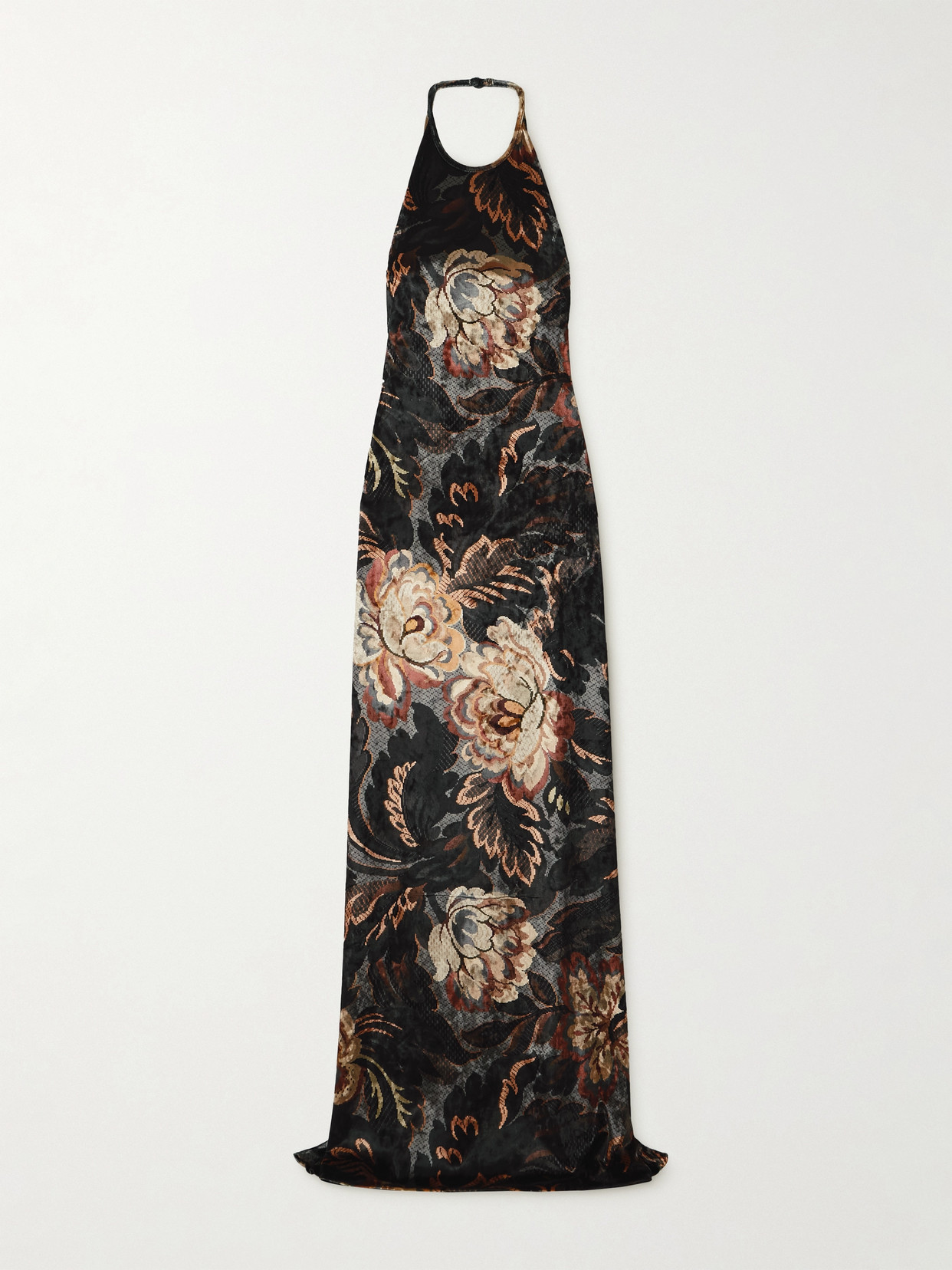 Etro - Floral-print Velvet Halterneck Maxi Dress - Black