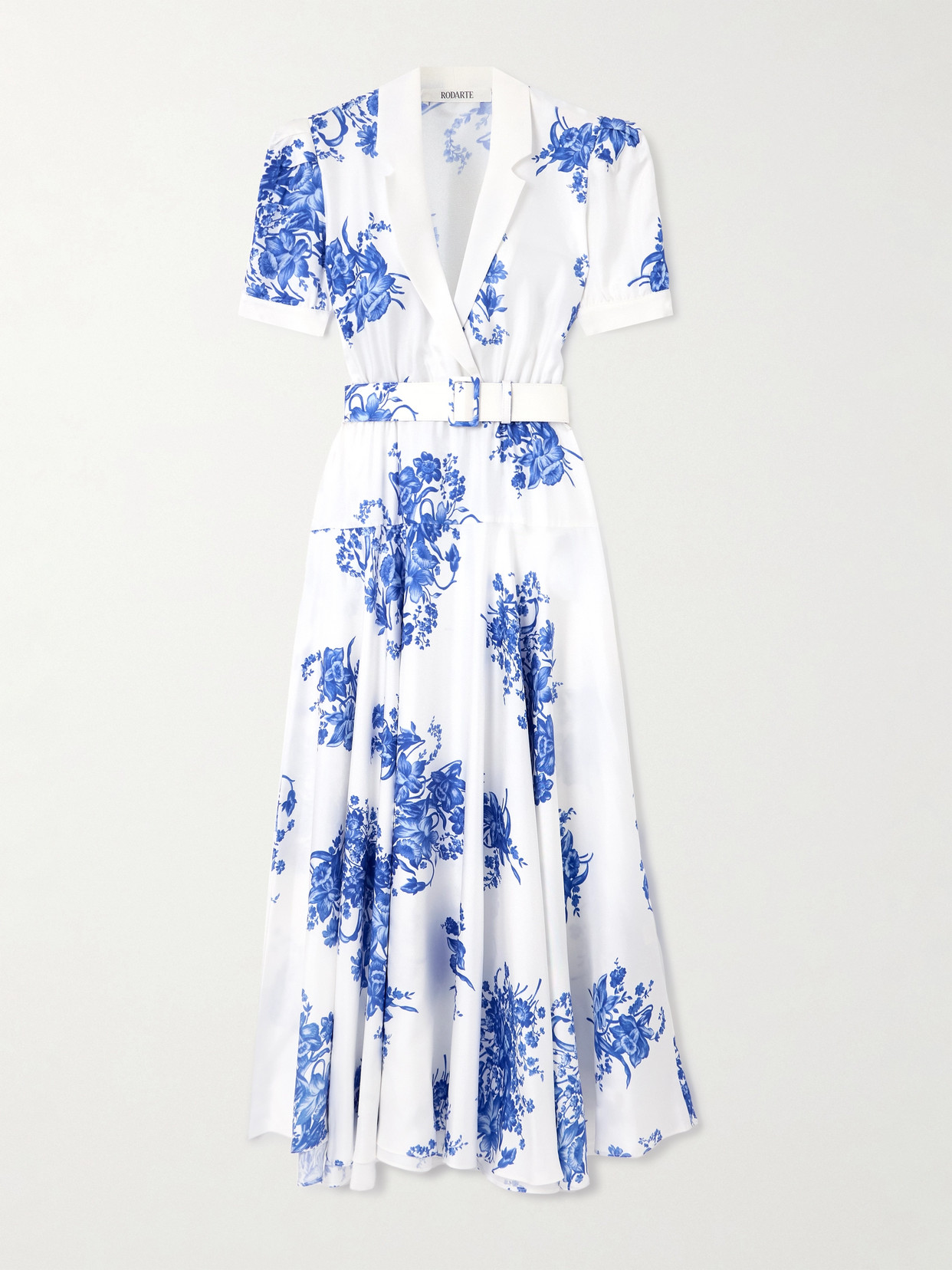 Rodarte - Belted Floral-print Silk-twill Midi Dress - Blue