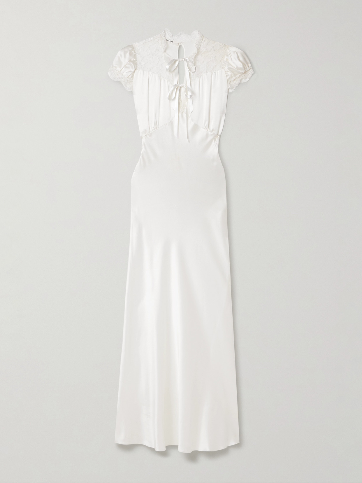 Rodarte - Lace-trimmed Silk-satin Midi Dress - Off-white